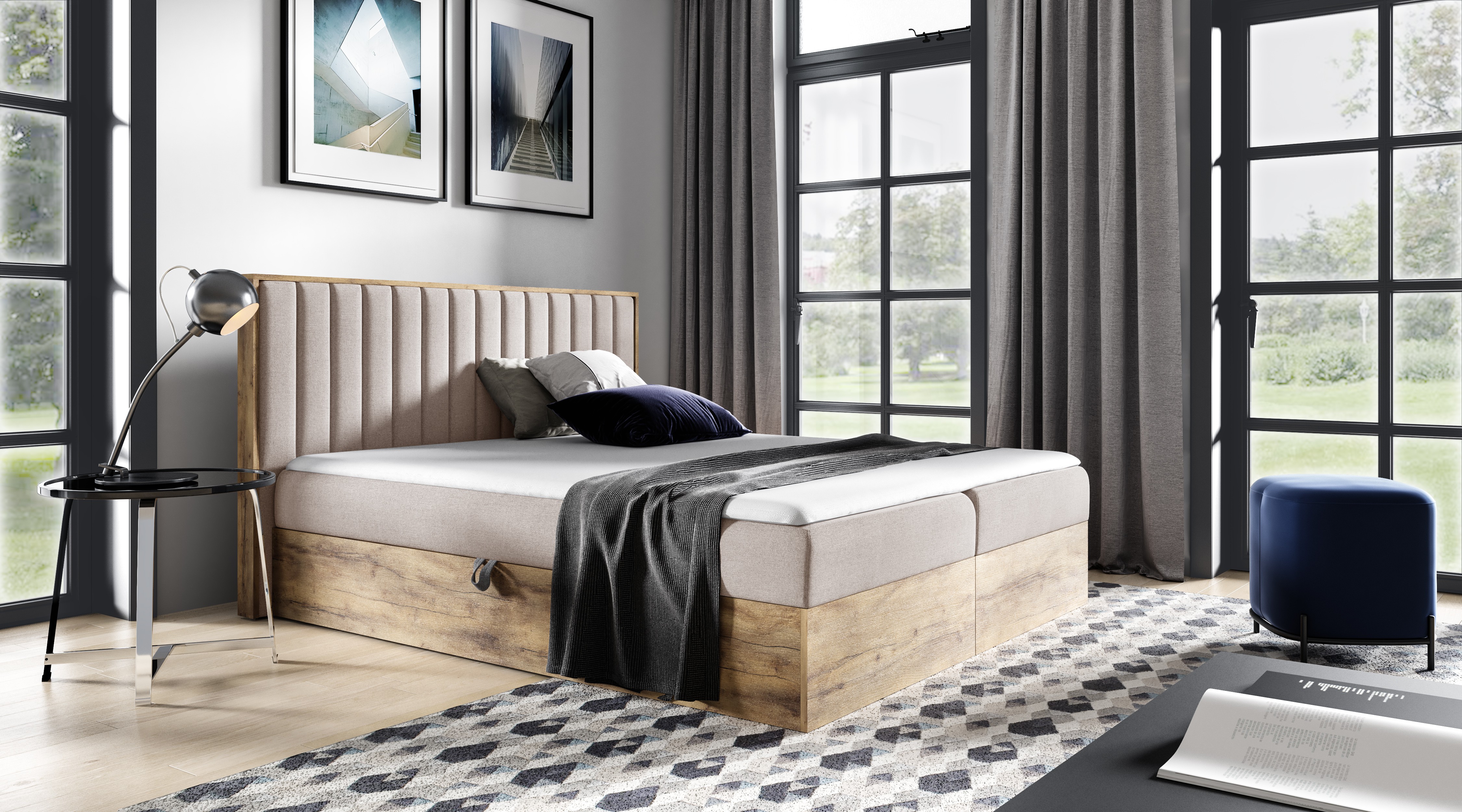 Łóżko kontynentalne WOOD 4 pojemniki na pościel 140x200