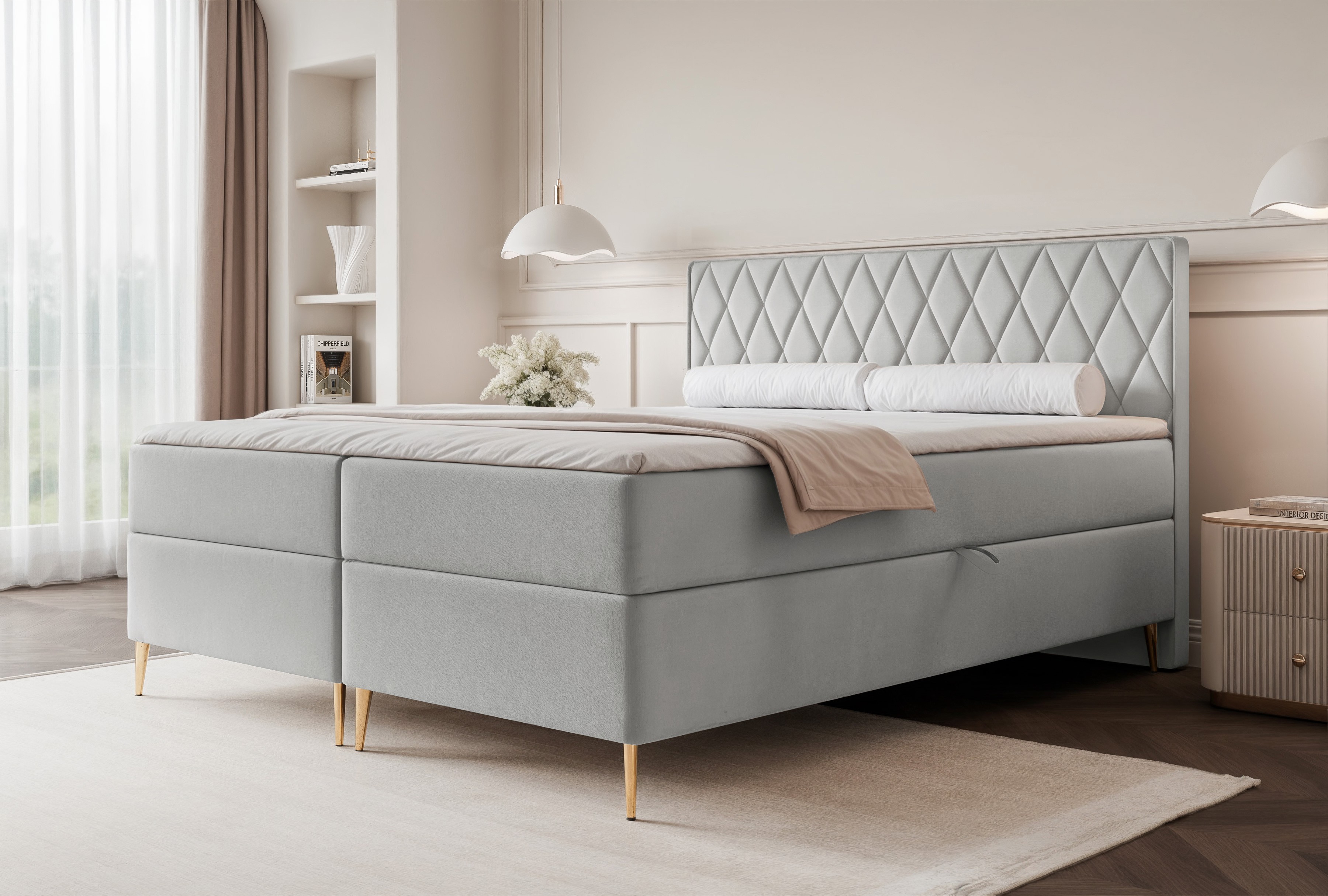 Łóżko kontynentalne CARO II szary pojemniki na pościel