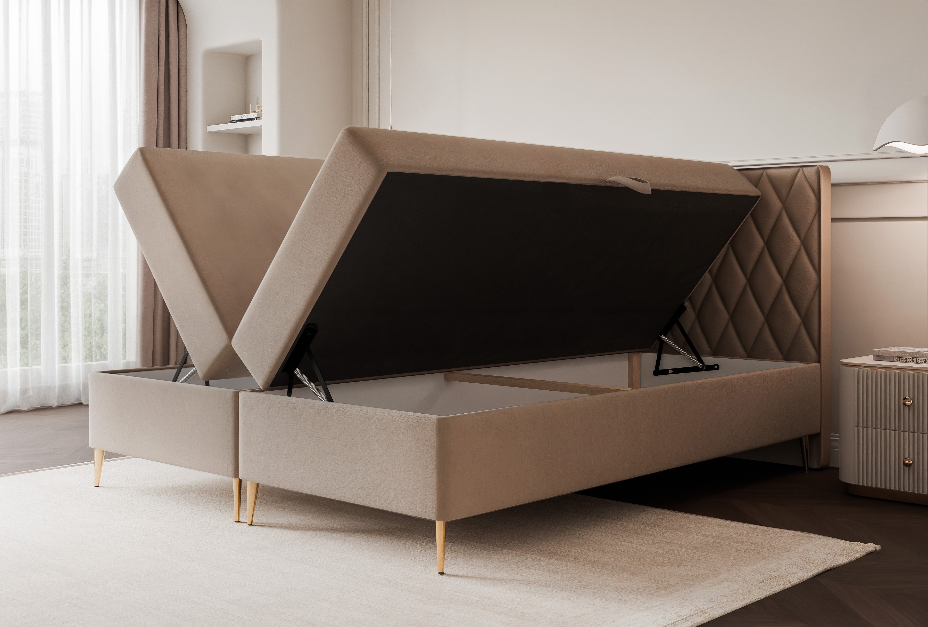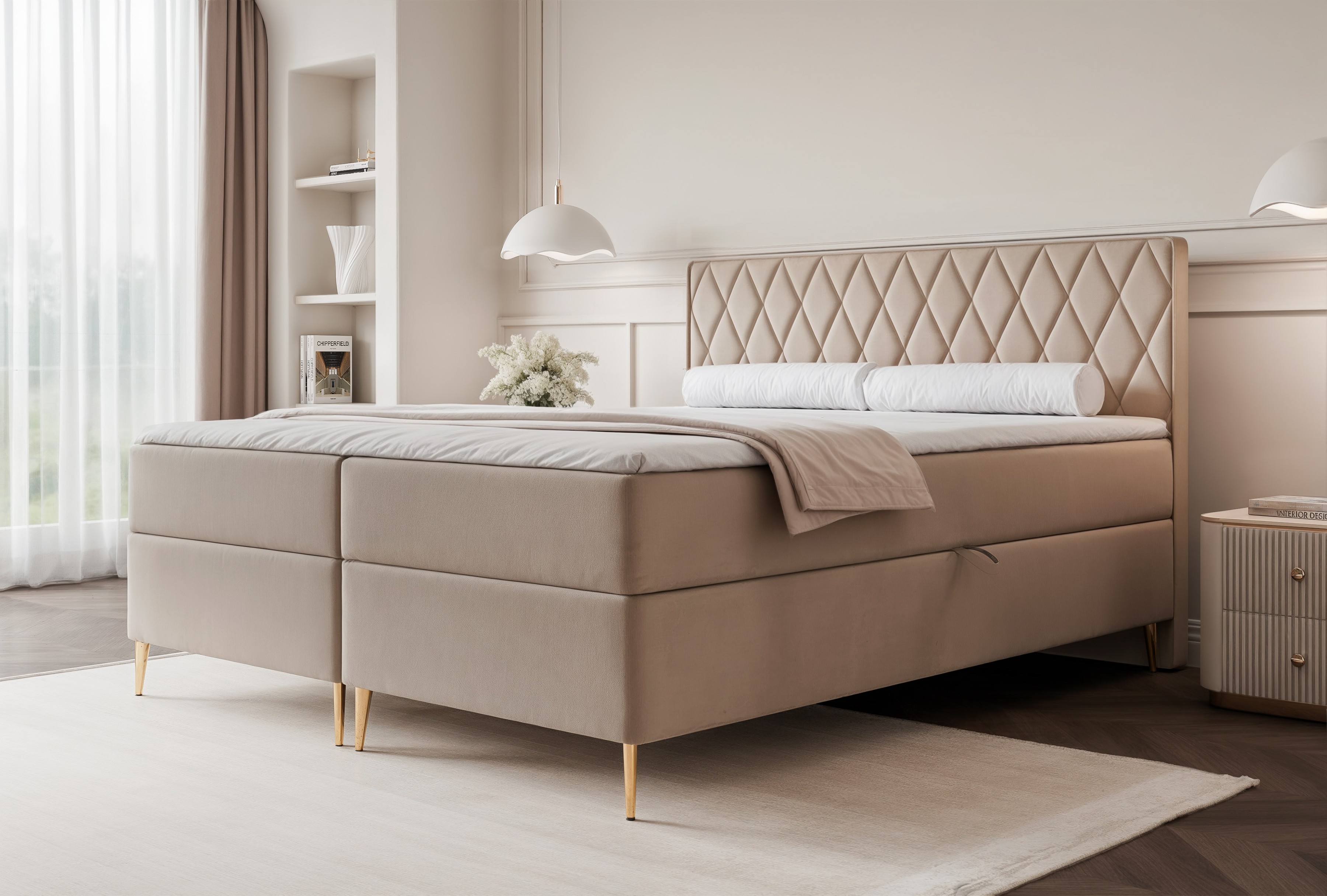 Łóżko kontynentalne CARO II beżowe pojemniki na pościel