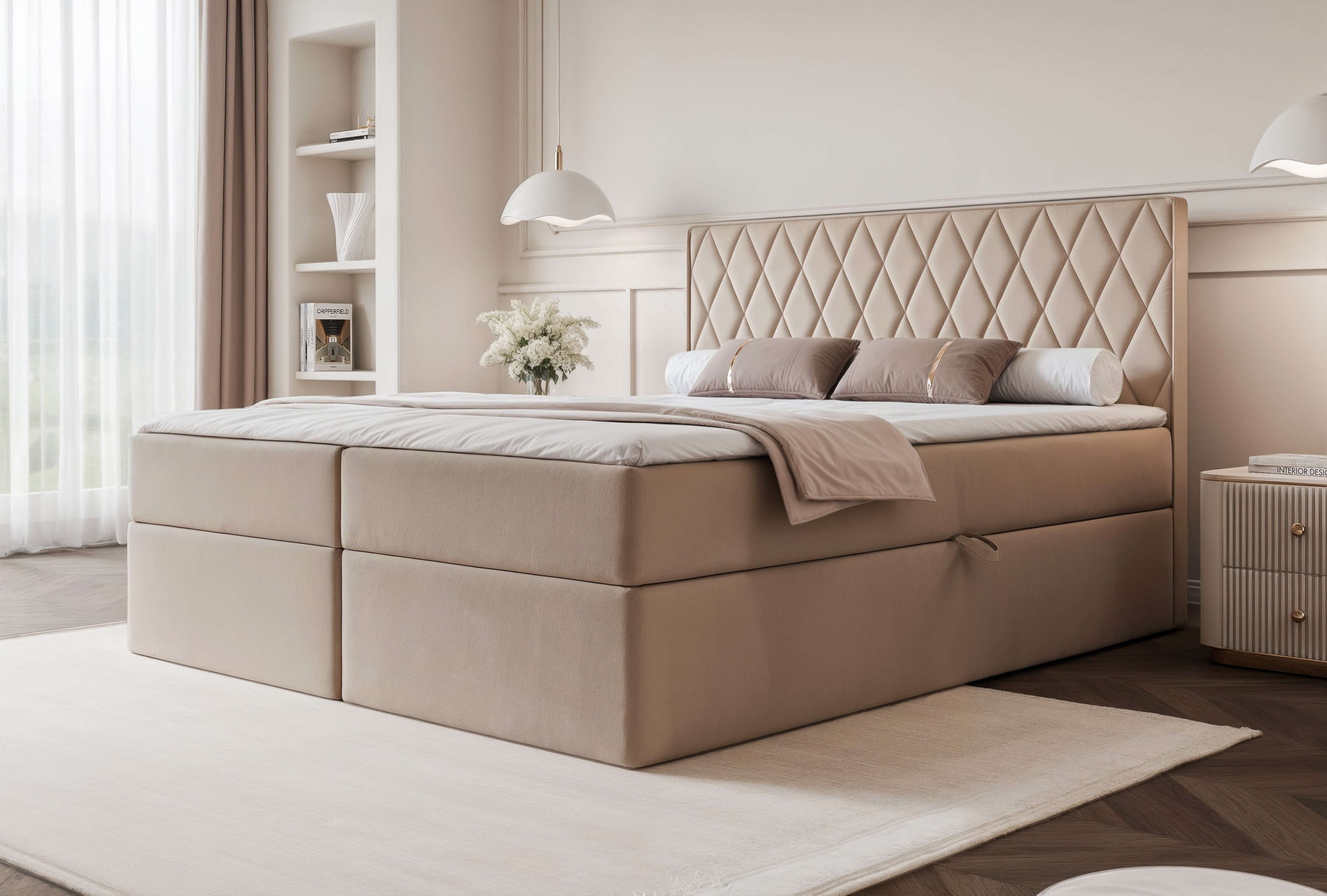 Łóżko kontynentalne CARO beżowe pojemniki na pościel