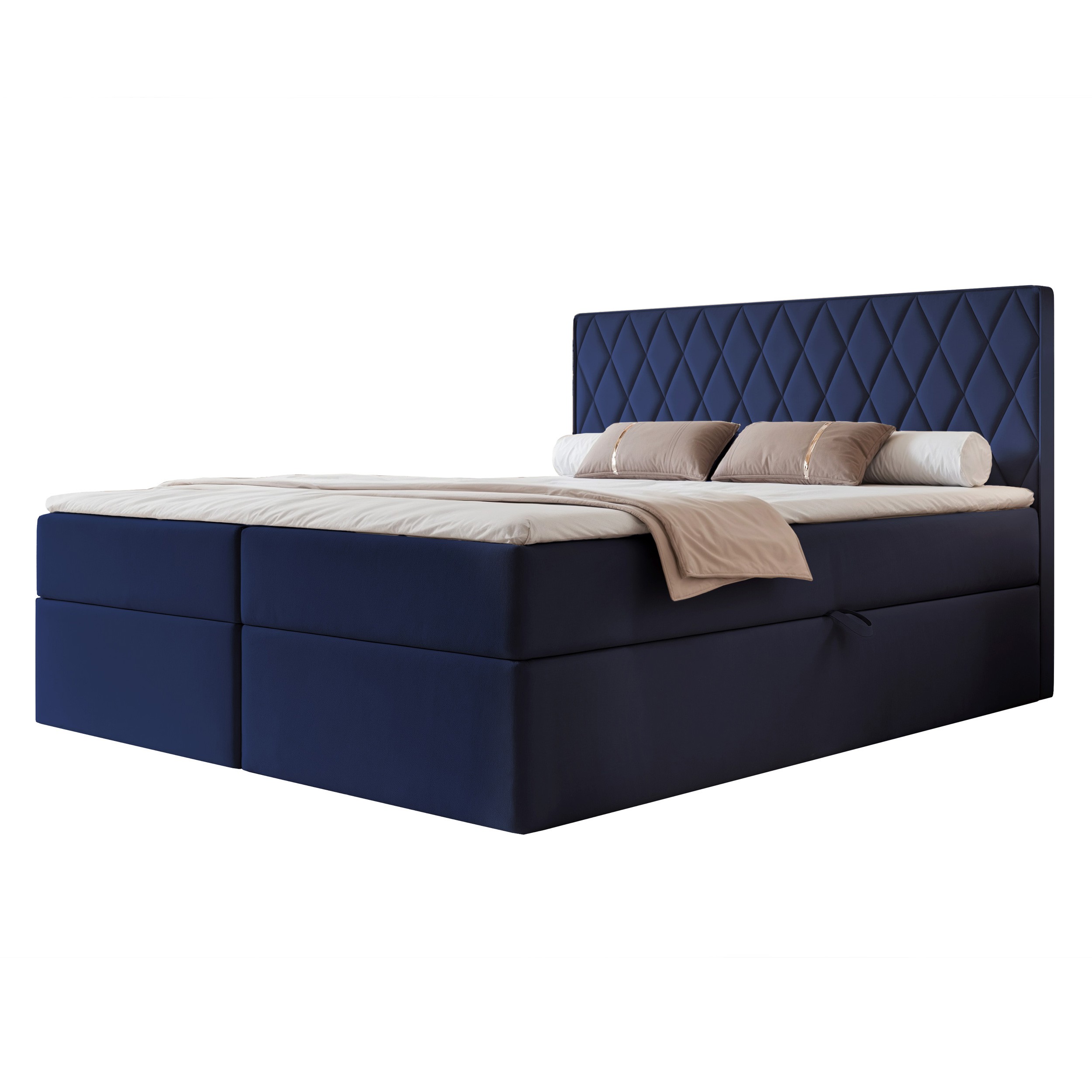 Łóżko kontynentalne CARO granatowe pojemniki na pościel