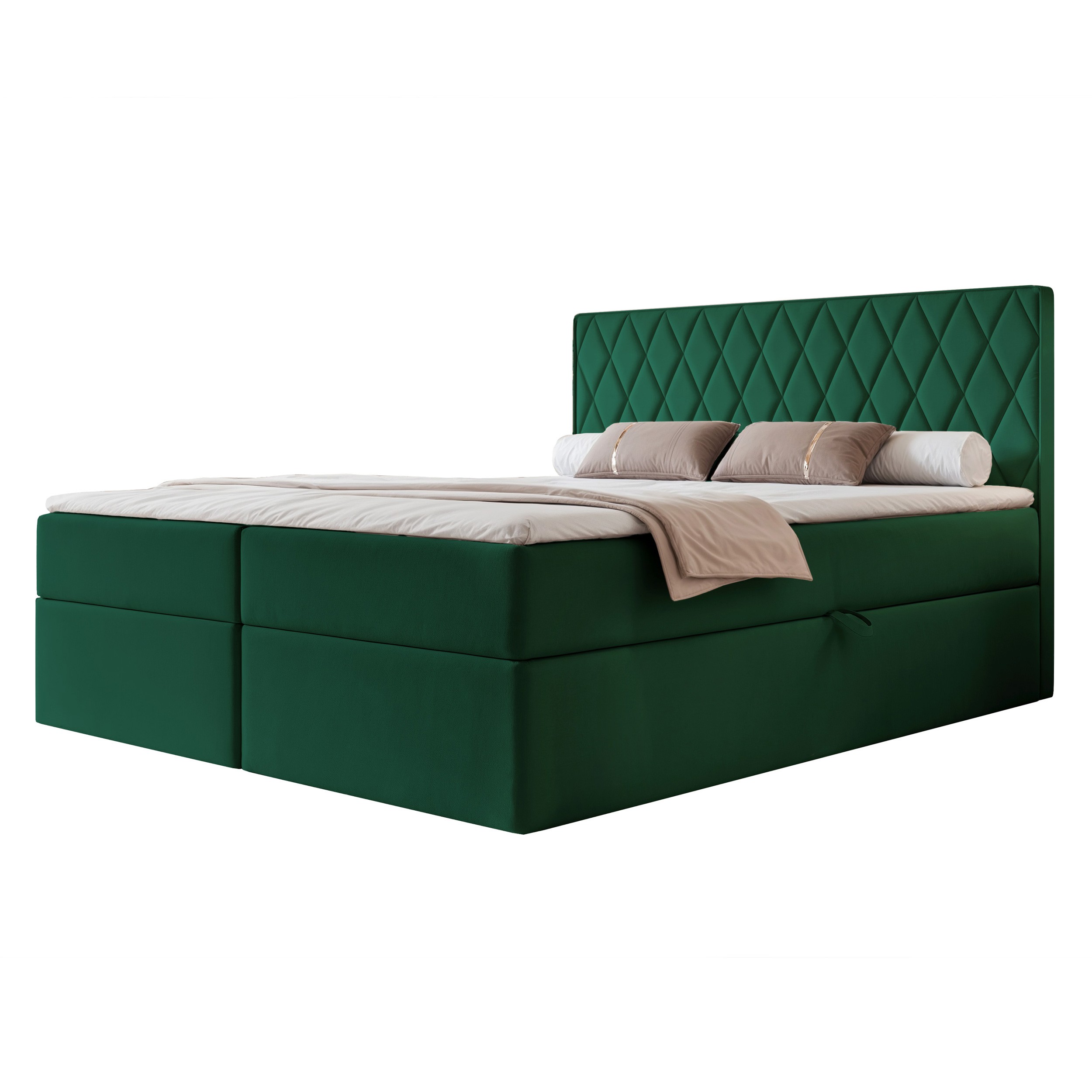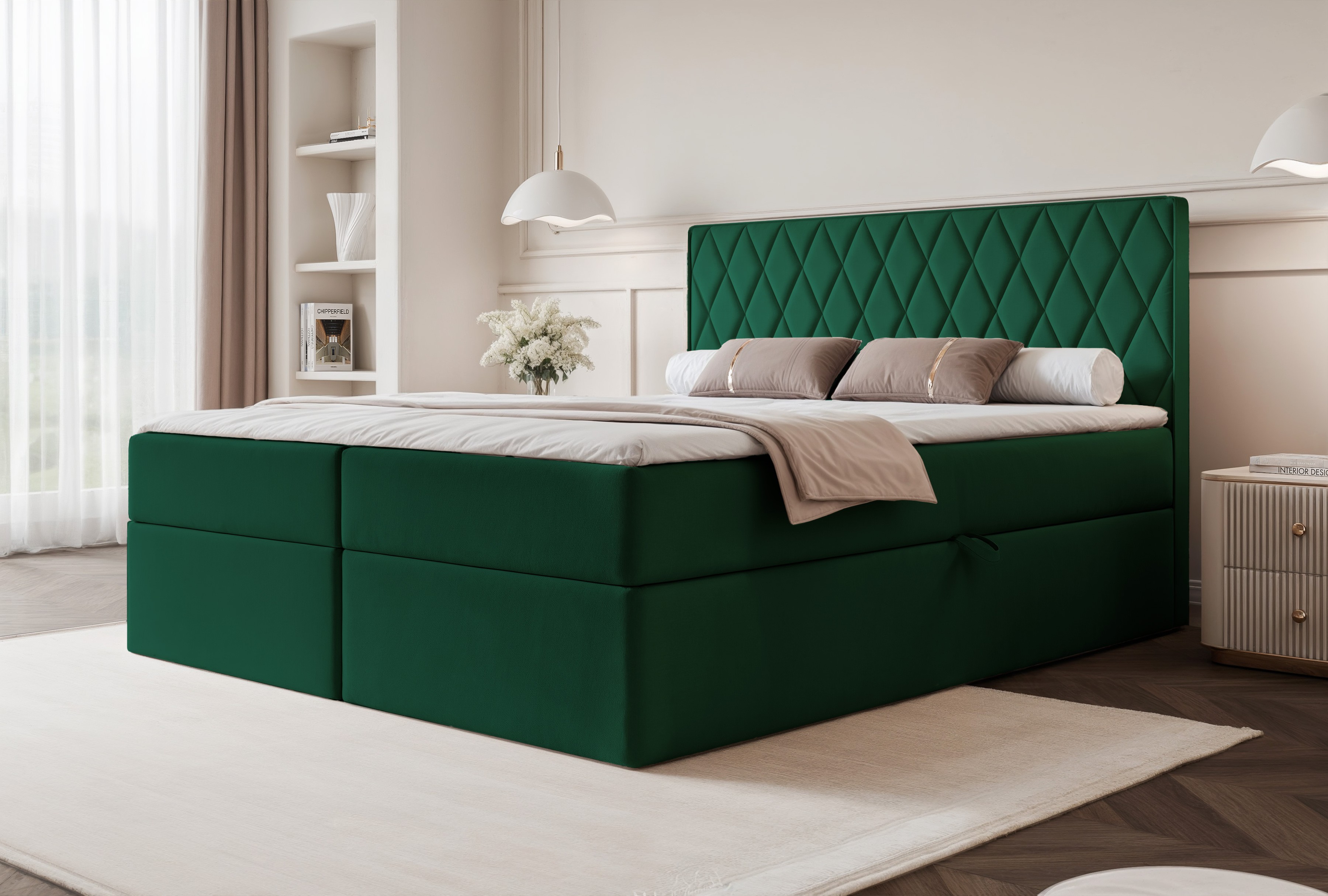 Łóżko kontynentalne CARO butelkowa zieleń pojemniki na pościel