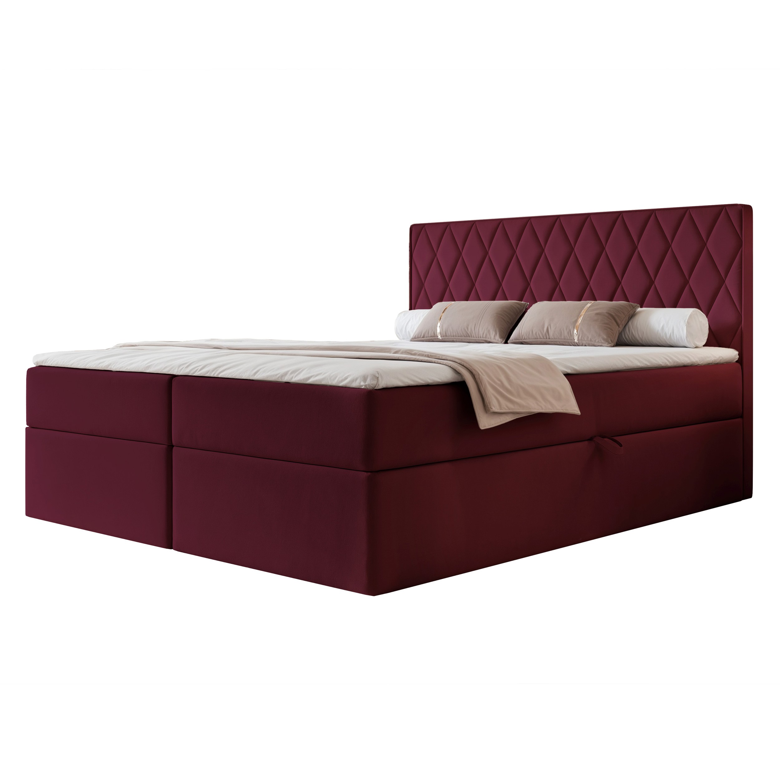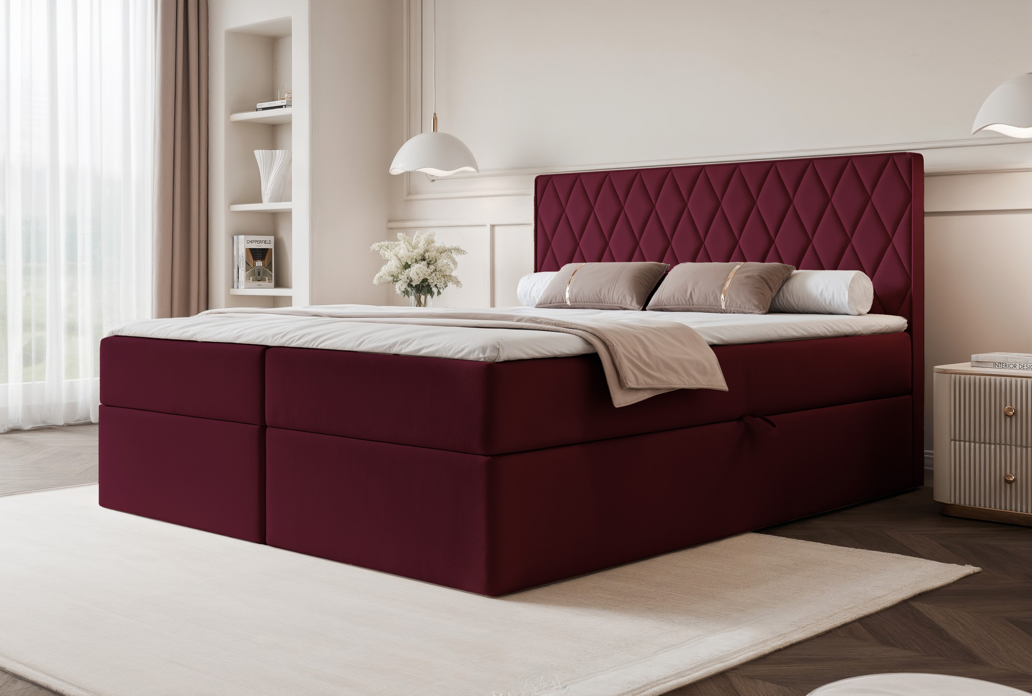 Łóżko kontynentalne CARO bordowe pojemniki na pościel
