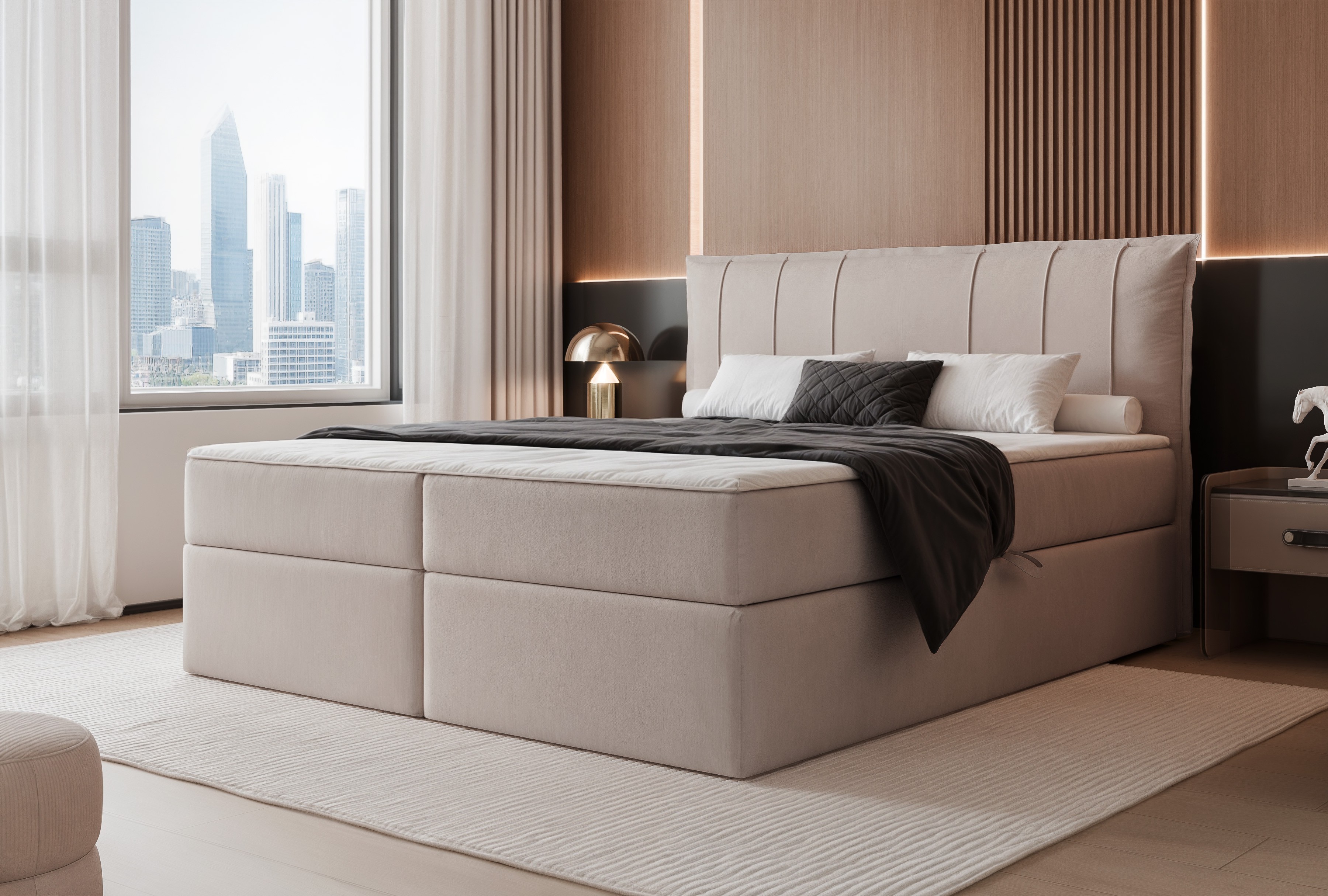 Łóżko kontynentalne MOLY z pojemnikami na pościel – komfort, styl i funkcjonalność