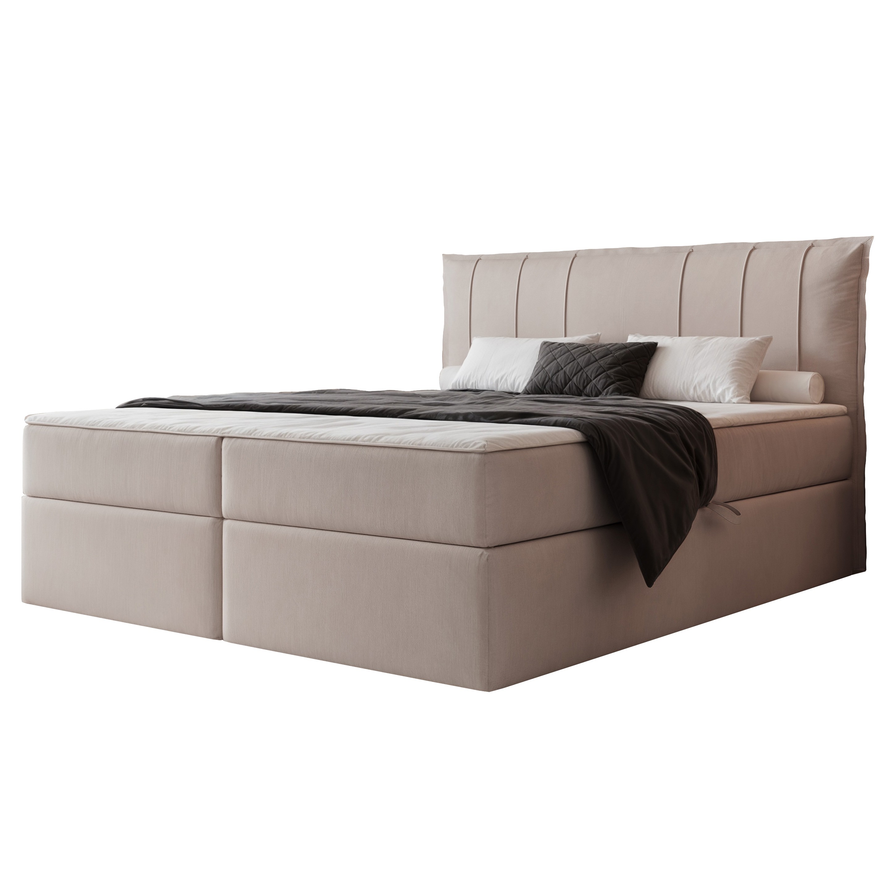 Łóżko kontynentalne MOLY beżowe pojemniki na pościel