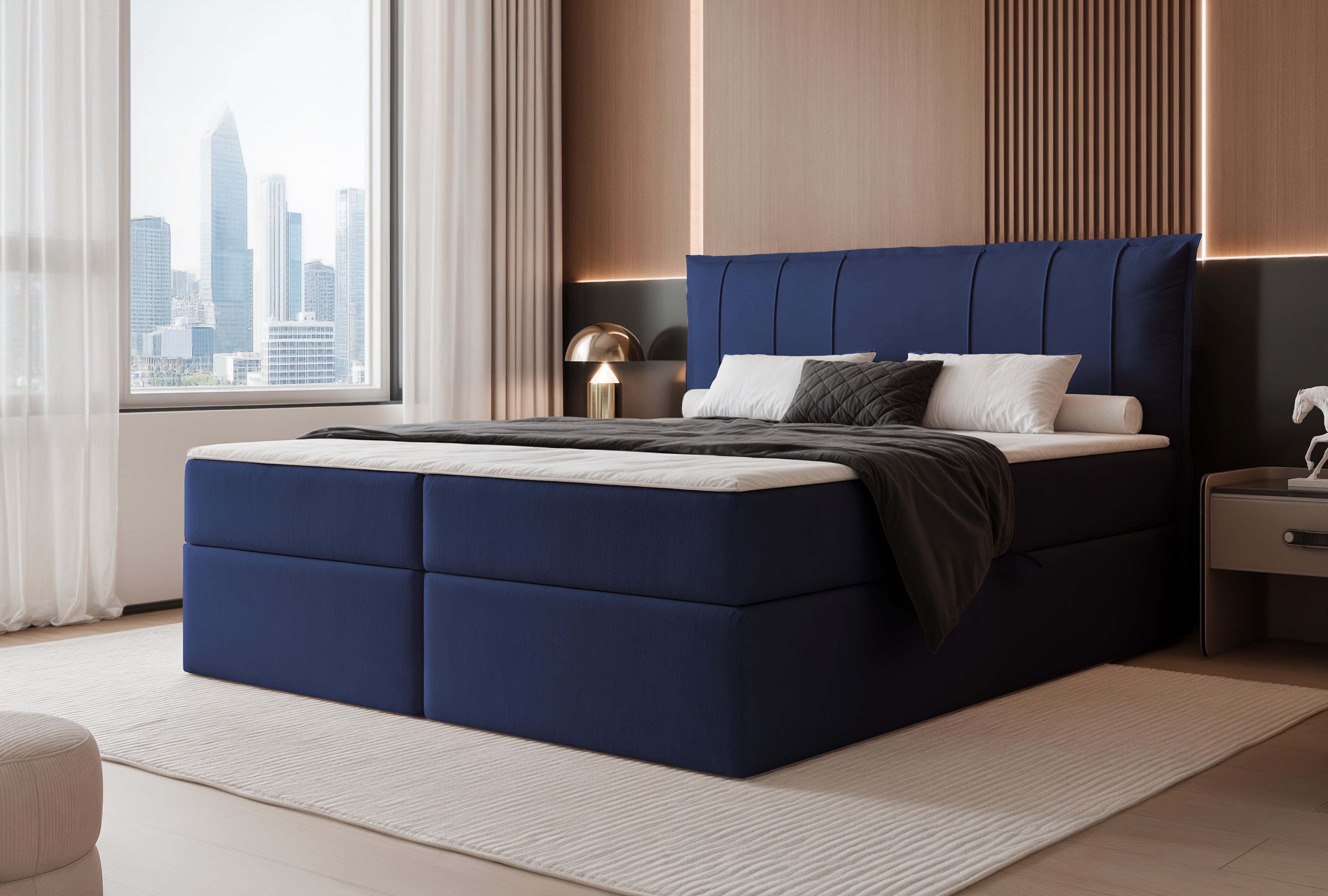 Łóżko kontynentalne MOLY z pojemnikami na pościel to połączenie wygody, elegancji i praktycznych rozwiązań do każdej sypialni. Stabilna konstrukcja z dwoma pojemnikami na pościel zapewnia dodatkowe miejsce do przechowywania i pomaga utrzymać porządek.