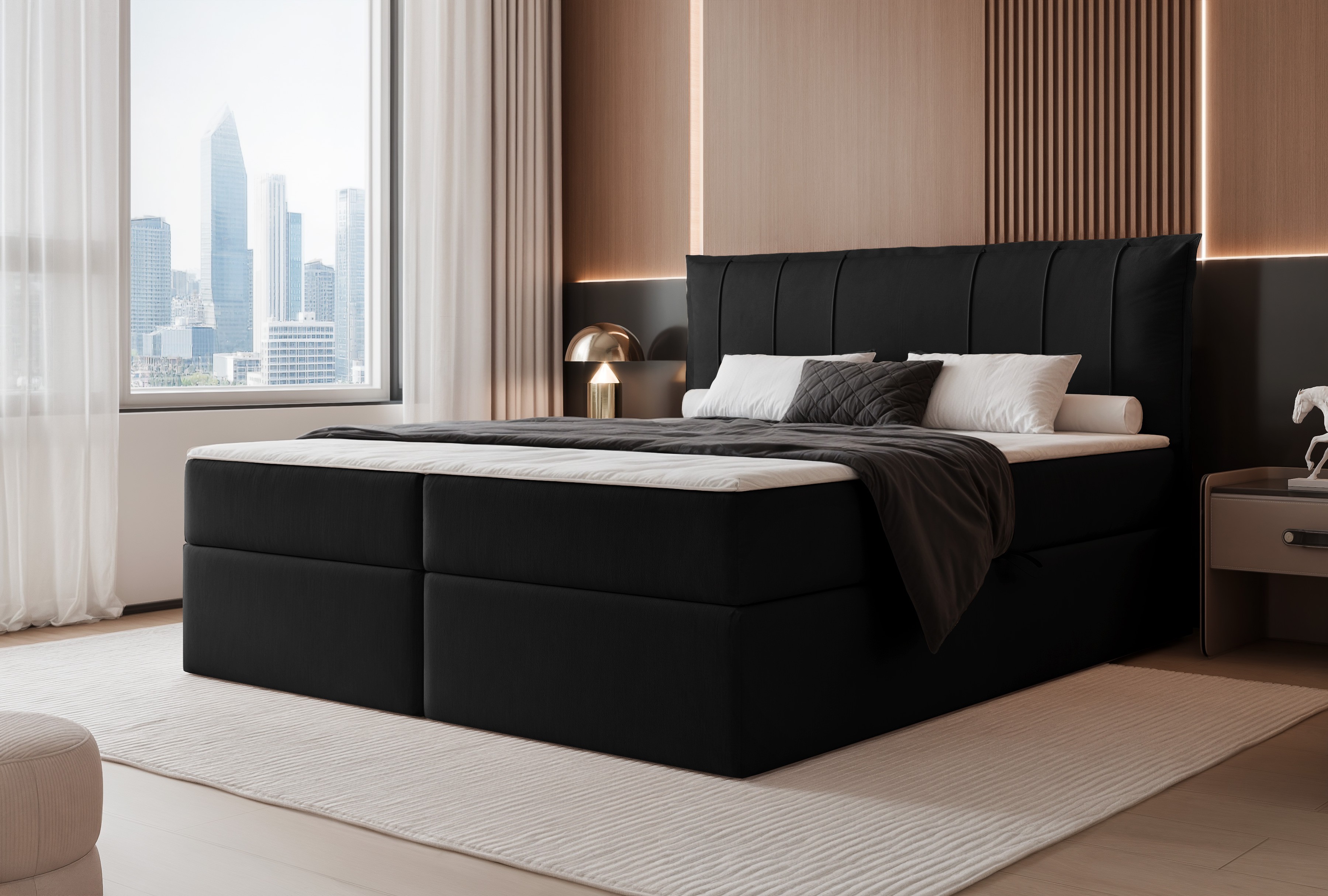 Łóżko kontynentalne MOLY czarne pojemniki na pościel