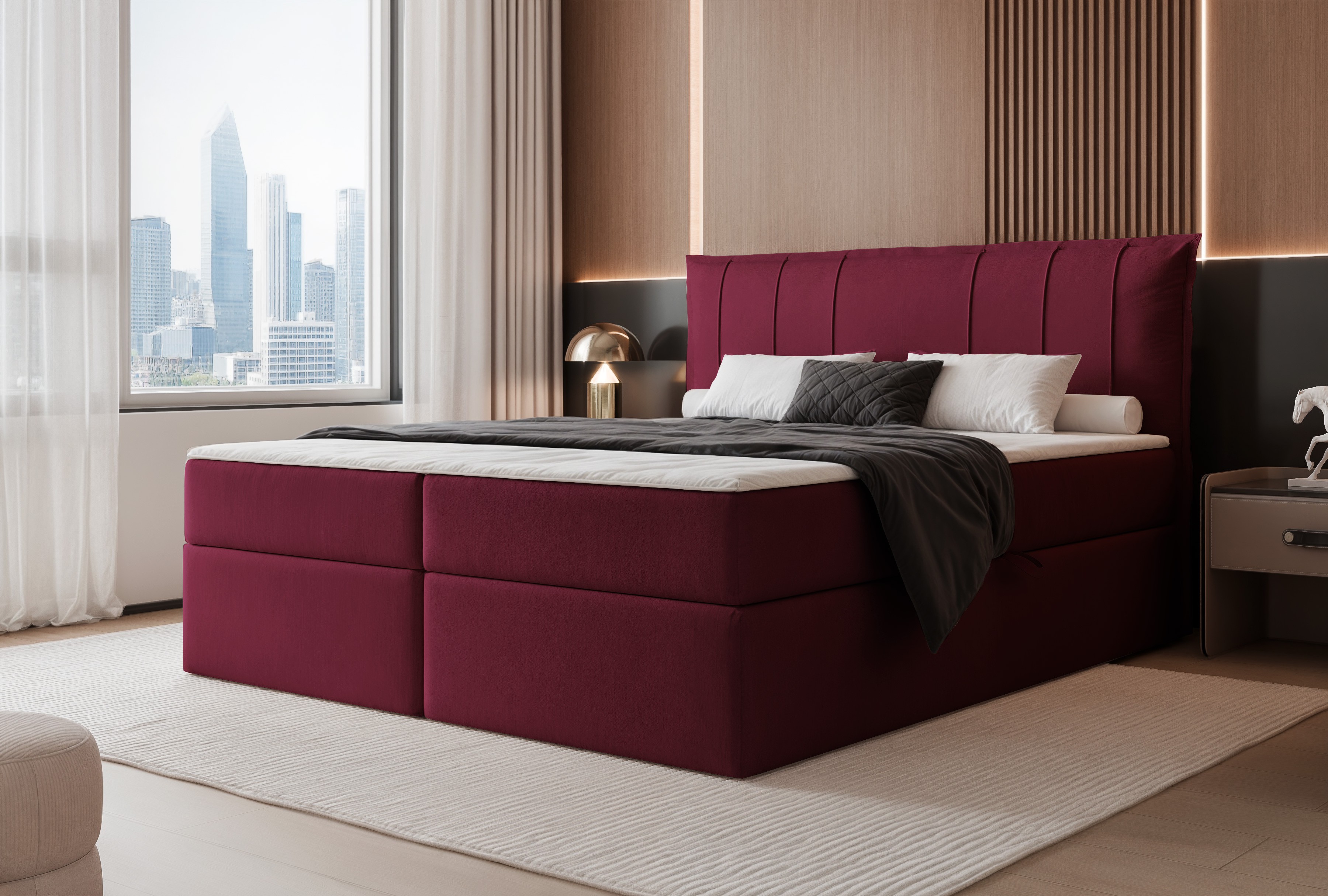 Łóżko kontynentalne MOLY bordowe pojemniki na pościel