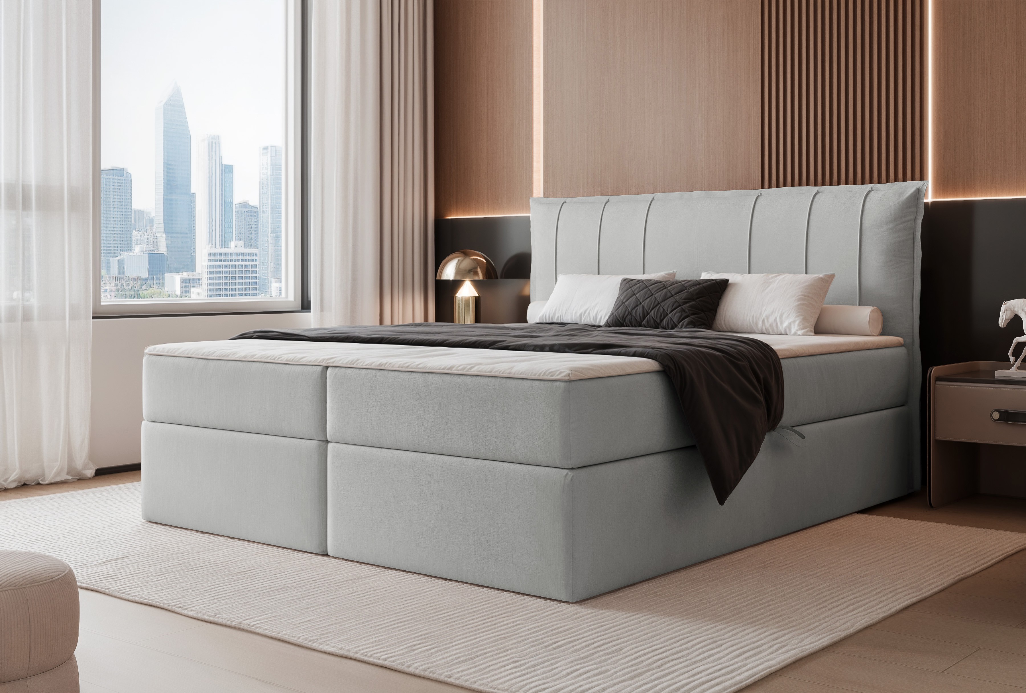 Łóżko kontynentalne MOLY z pojemnikami na pościel to połączenie wygody, elegancji i praktycznych rozwiązań do każdej sypialni. Stabilna konstrukcja z dwoma pojemnikami na pościel zapewnia dodatkowe miejsce do przechowywania i pomaga utrzymać porządek.