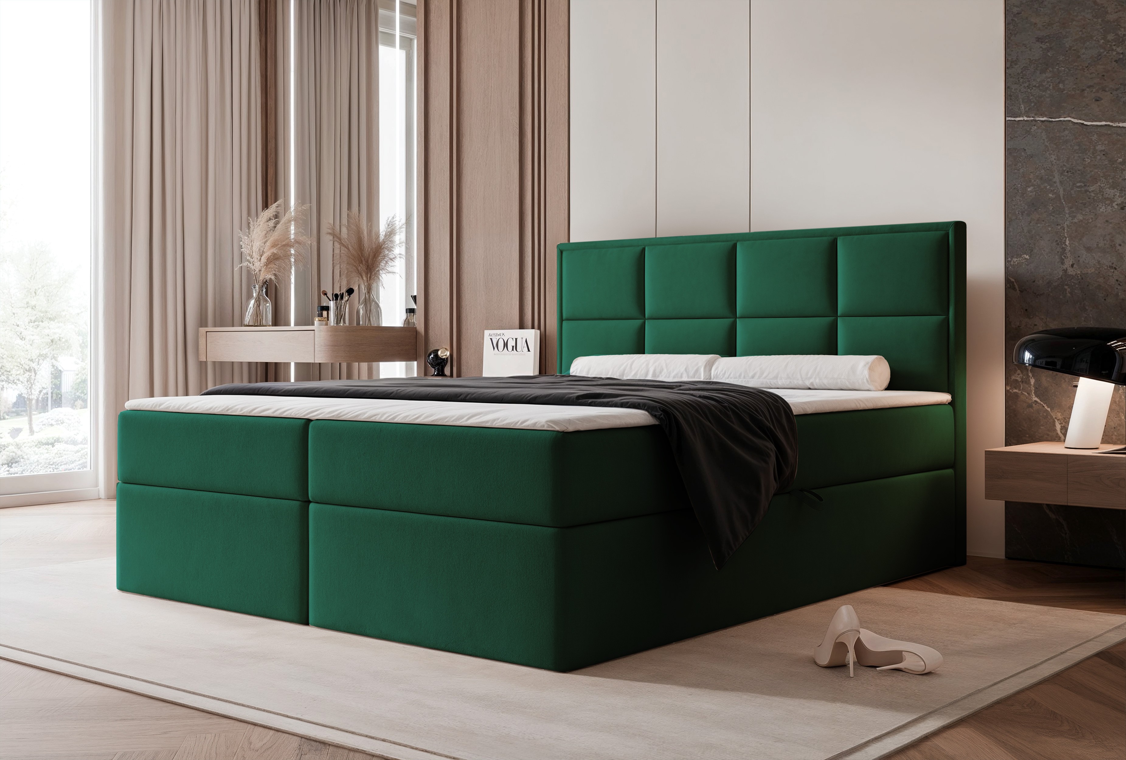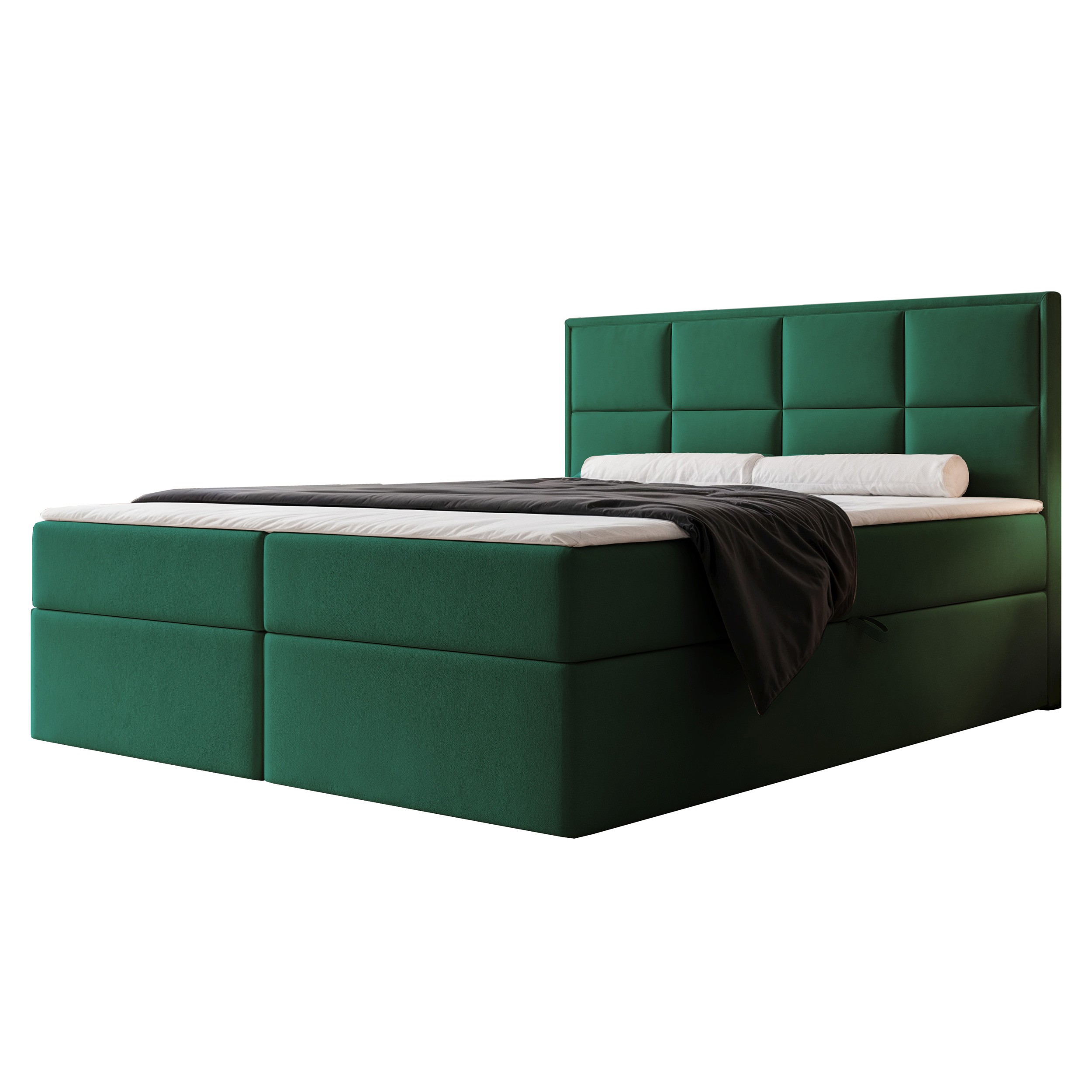 Łóżko kontynentalne SILENSIO butelkowa zieleń pojemniki na pościel
