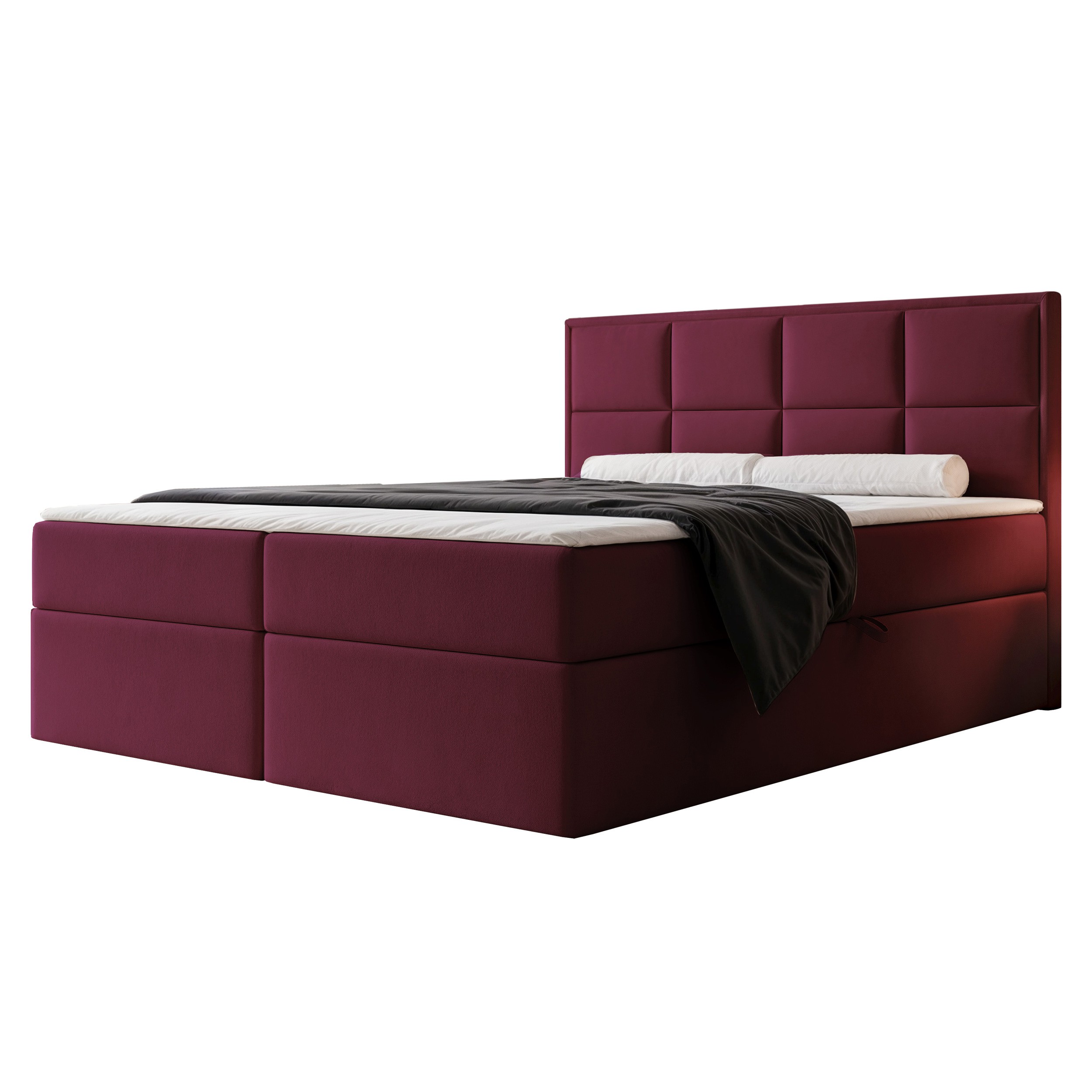 Łóżko kontynentalne SILENSIO bordowe pojemniki na pościel