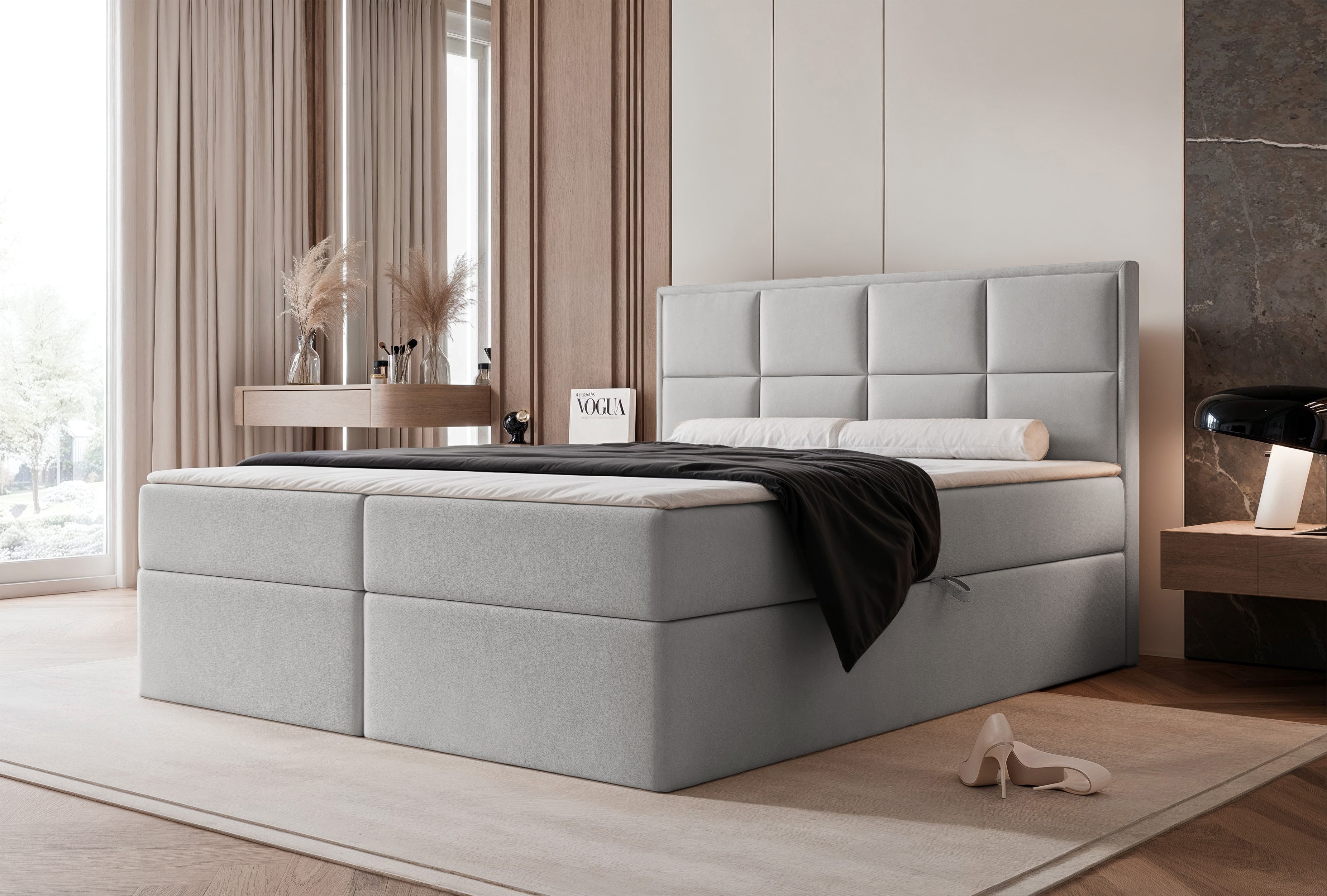 Materac bonellowy gwarantuje odpowiednie podparcie ciała, a dodatkowy topper zwiększa komfort i elastyczność powierzchni spania. Wysokiej jakości tapicerka oraz staranne wykończenie nadają łóżku stylowy wygląd, który pasuje zarówno do nowoczesnych, jak i klasycznych wnętrz.