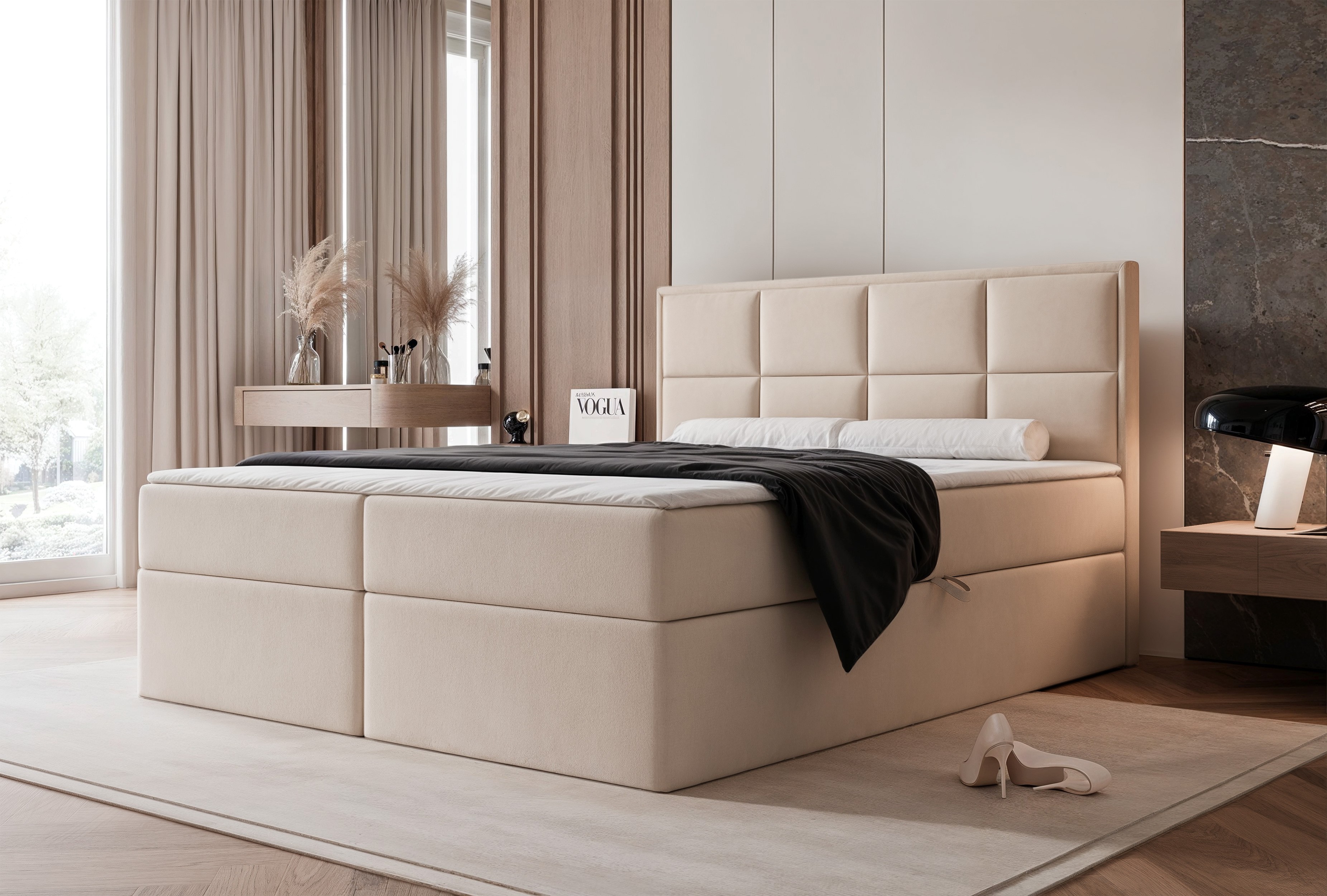Łóżko kontynentalne SILENSIO ecru pojemniki na pościel