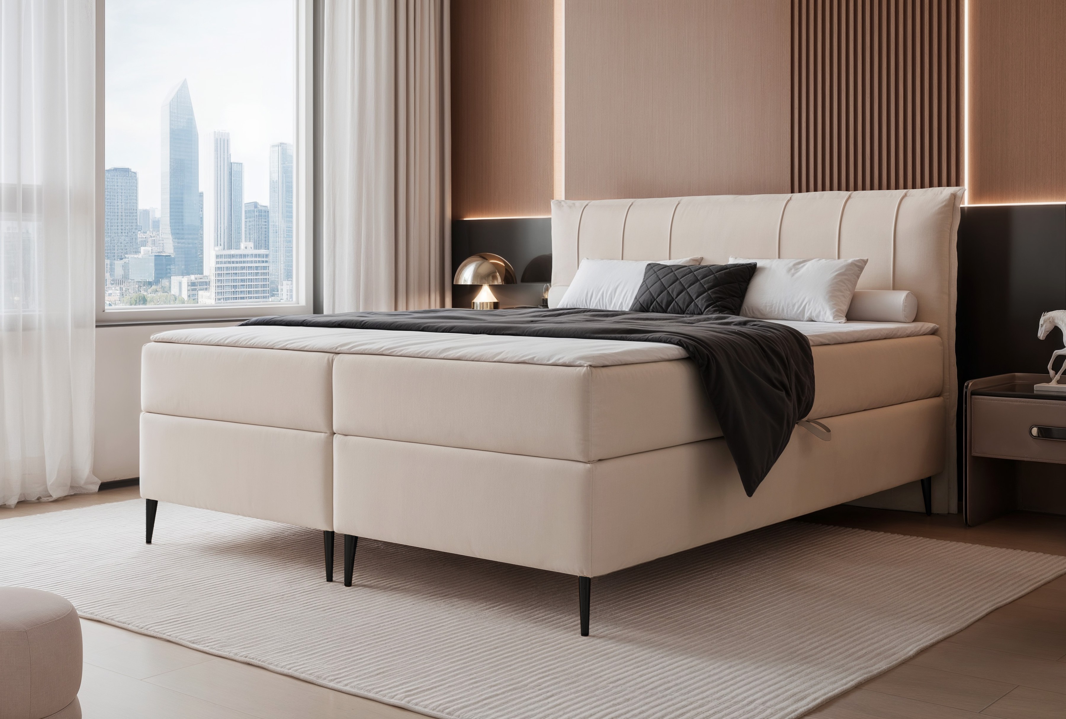 Łóżko kontynentalne SUZI z pojemnikami na pościel to połączenie wygody, elegancji i praktycznych rozwiązań do każdej sypialni. Stabilna konstrukcja z dwoma pojemnikami na pościel zapewnia dodatkowe miejsce do przechowywania i pomaga utrzymać porządek.