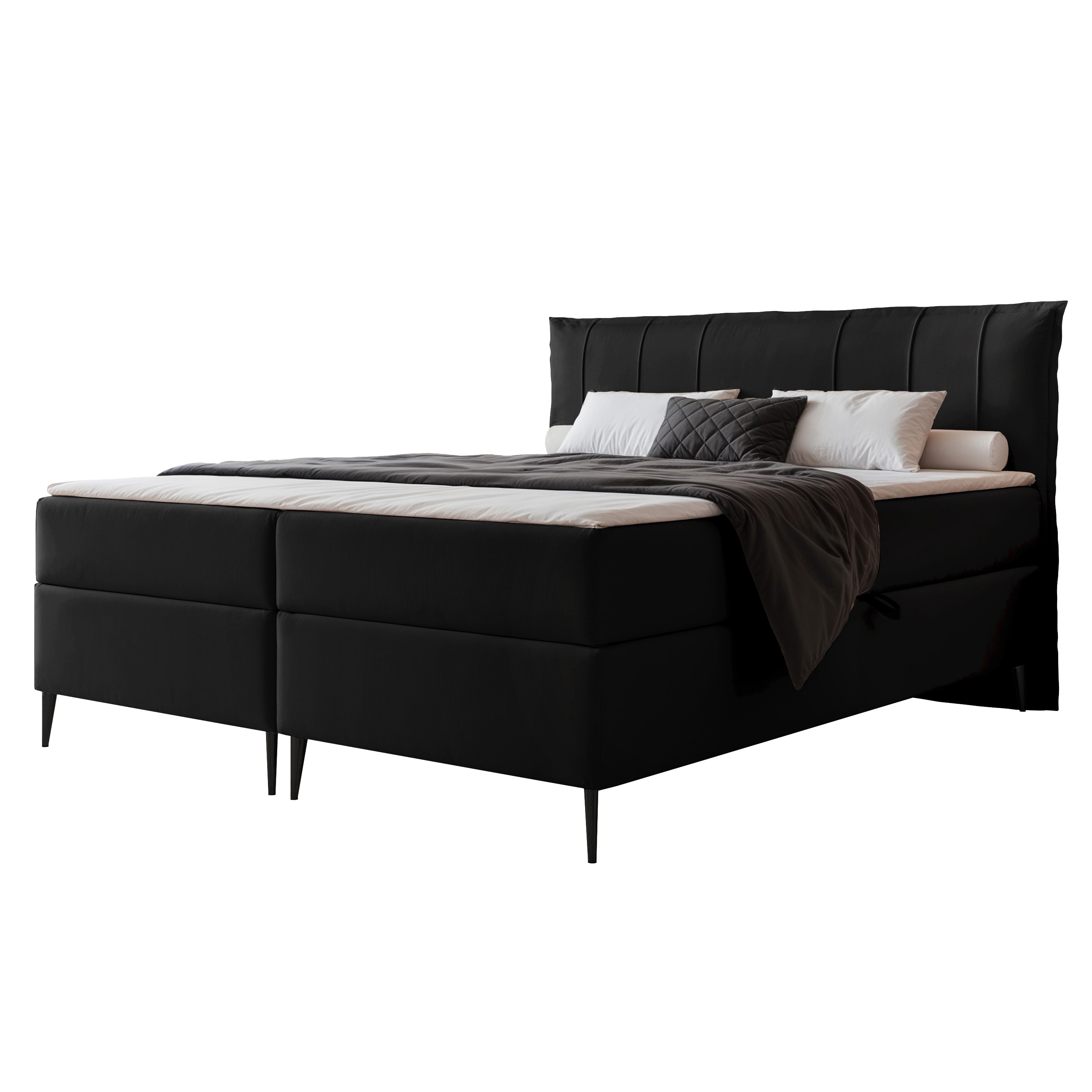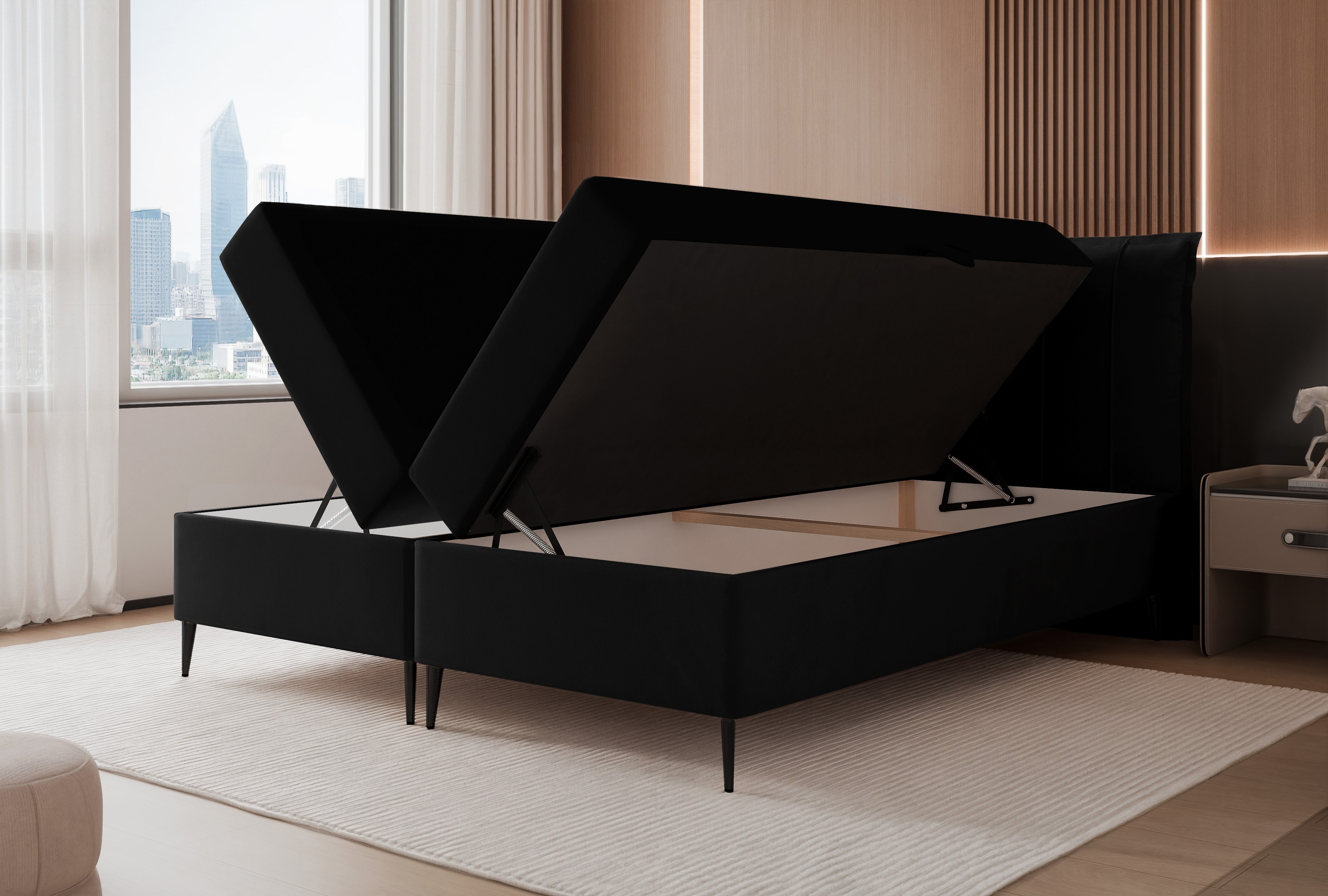 Łóżko kontynentalne SUZI czarne pojemniki na pościel