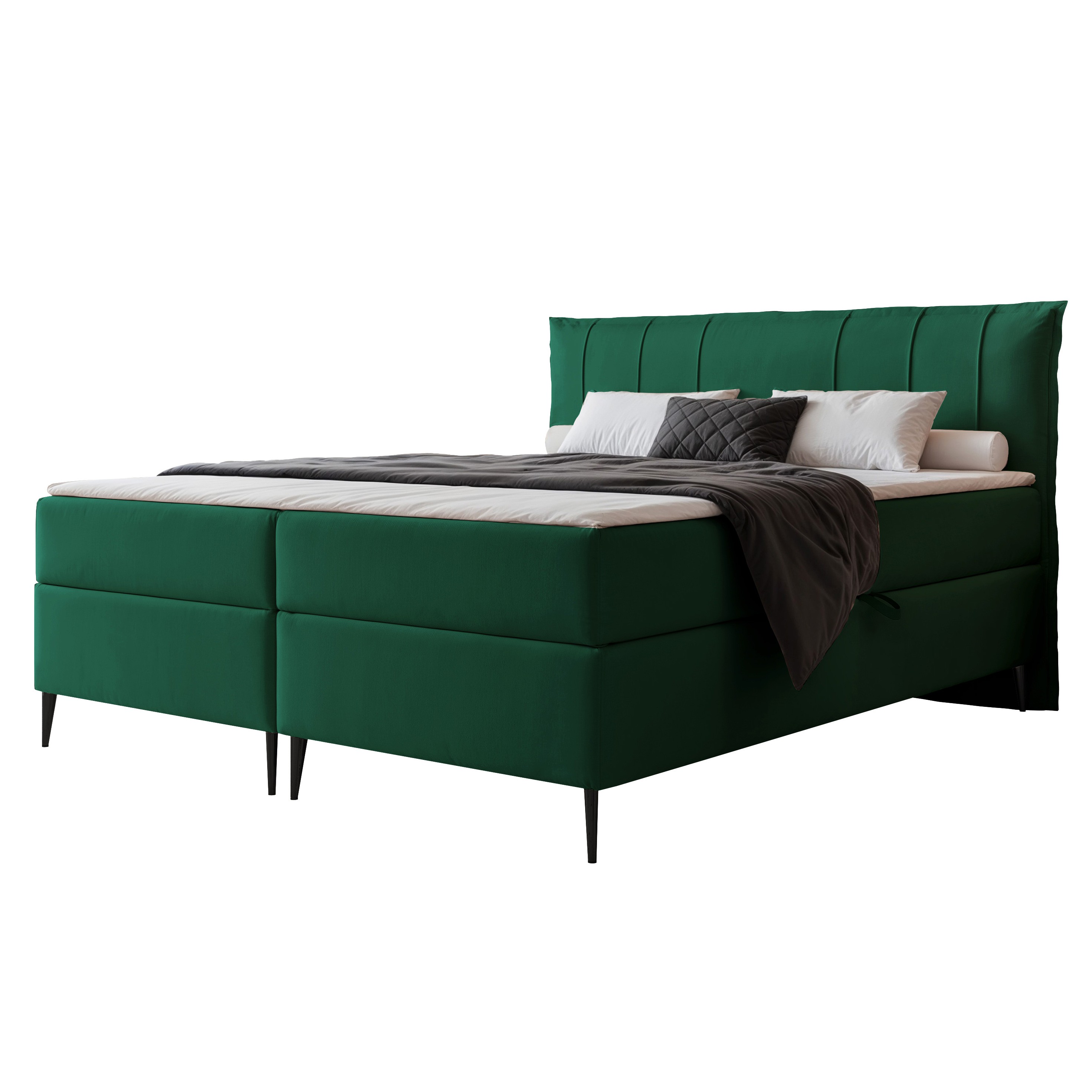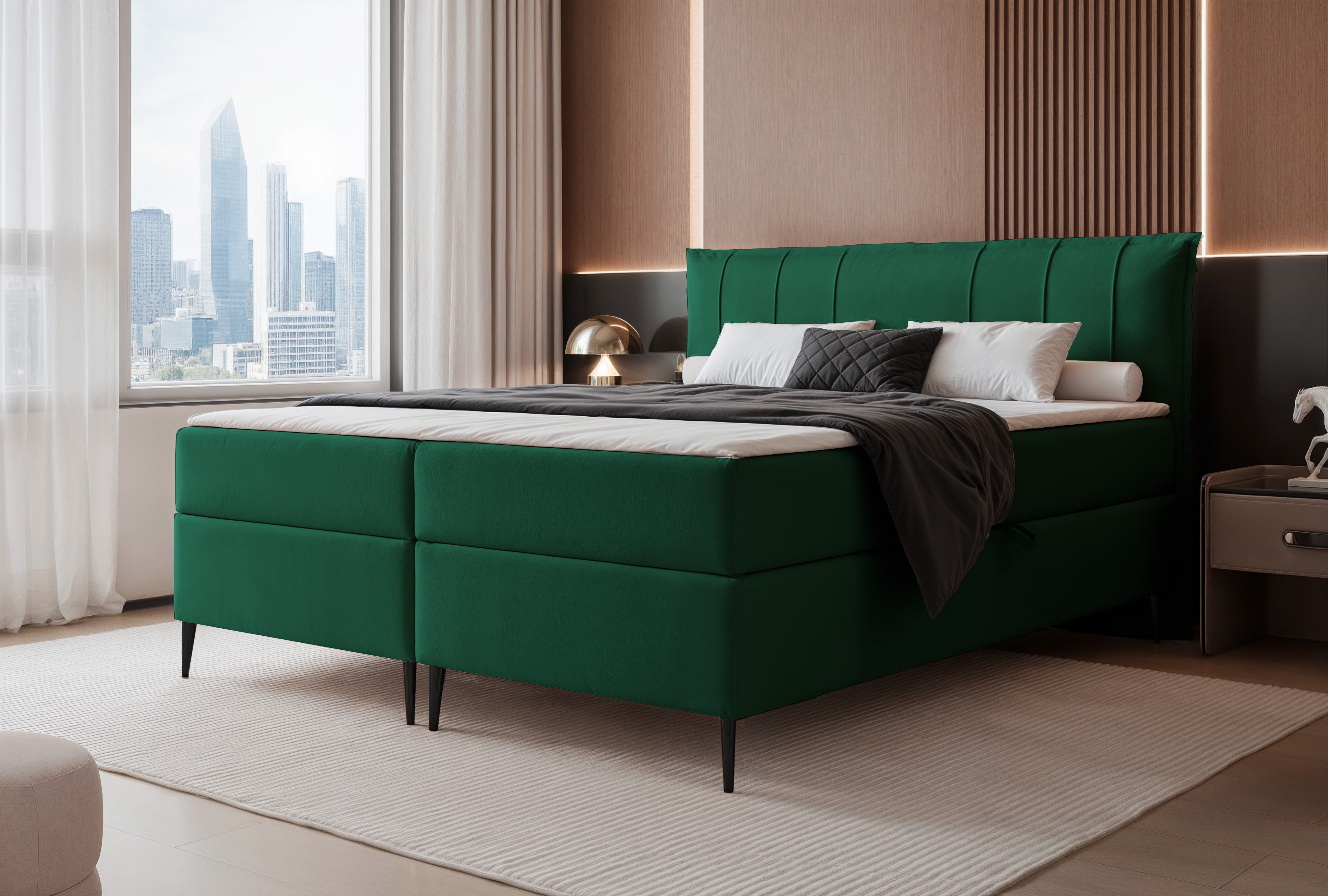 Łóżko kontynentalne SUZI butelkowa zieleń pojemniki na pościel