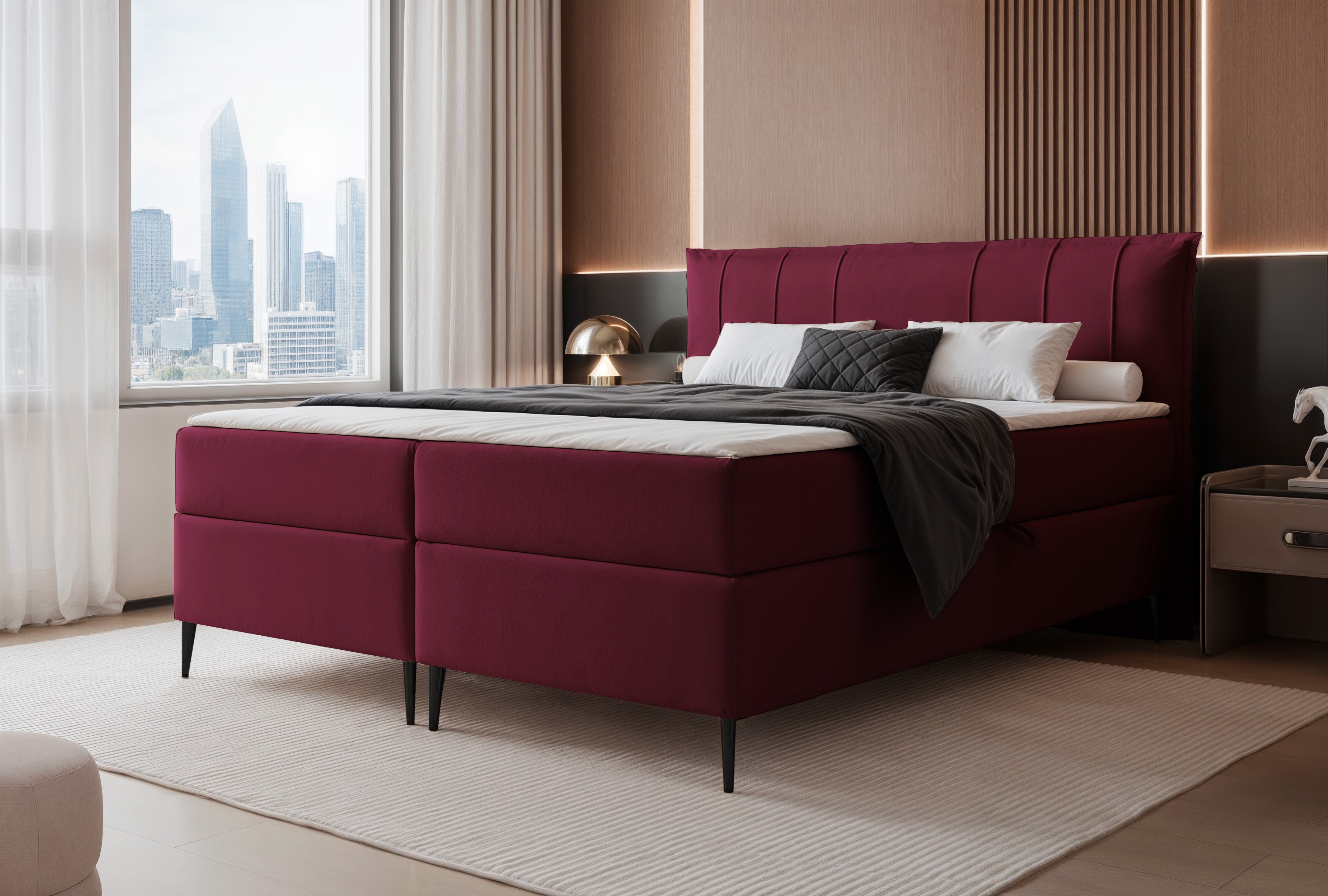 Łóżko kontynentalne SUZI bordowe pojemniki na pościel
