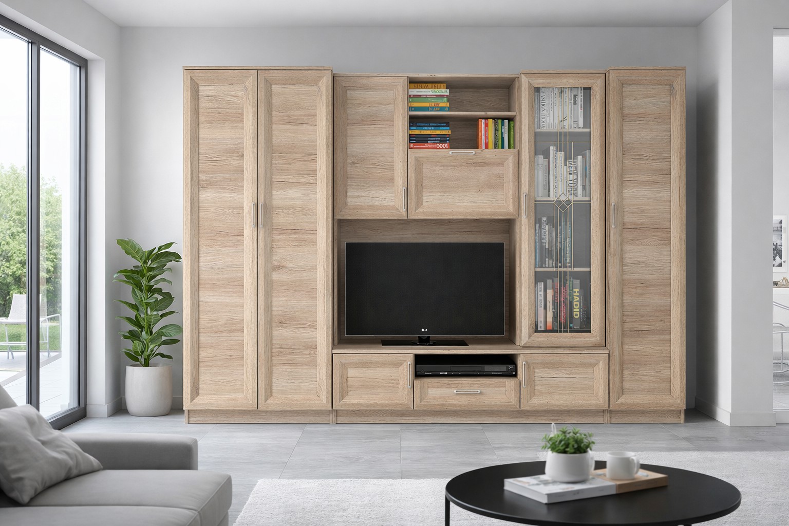 Zestaw ALEX A jest doskonałym wyborem dla tych, którzy we wszystkim szukają klasyki. Prosta konstrukcja i łatwe utrzymanie znajdą swoich fanów. W meblościance znajduje się wiele praktycznie rozmieszczonych schowków, które pomogą Ci zachować porządek, a dzięki otwartym i przeszklonym półkom podkreślisz swoją oryginalność stylowymi dodatkami. Meble są pojemne i dostępne w różnych kolorach.