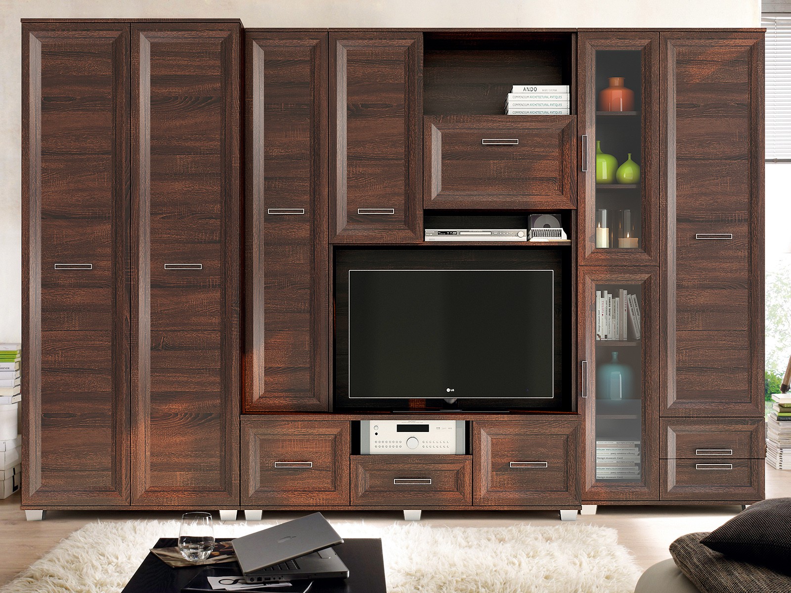 Zestaw KORAL A jest doskonałym wyborem dla tych, którzy we wszystkim szukają klasyki. Prosta konstrukcja i łatwe utrzymanie znajdą swoich fanów. W meblościance znajduje się wiele praktycznie rozmieszczonych schowków, które pomogą Ci zachować porządek, a dzięki otwartym i przeszklonym półkom podkreślisz swoją oryginalność stylowymi dodatkami. Meble są pojemne i dostępne w różnych kolorach.
