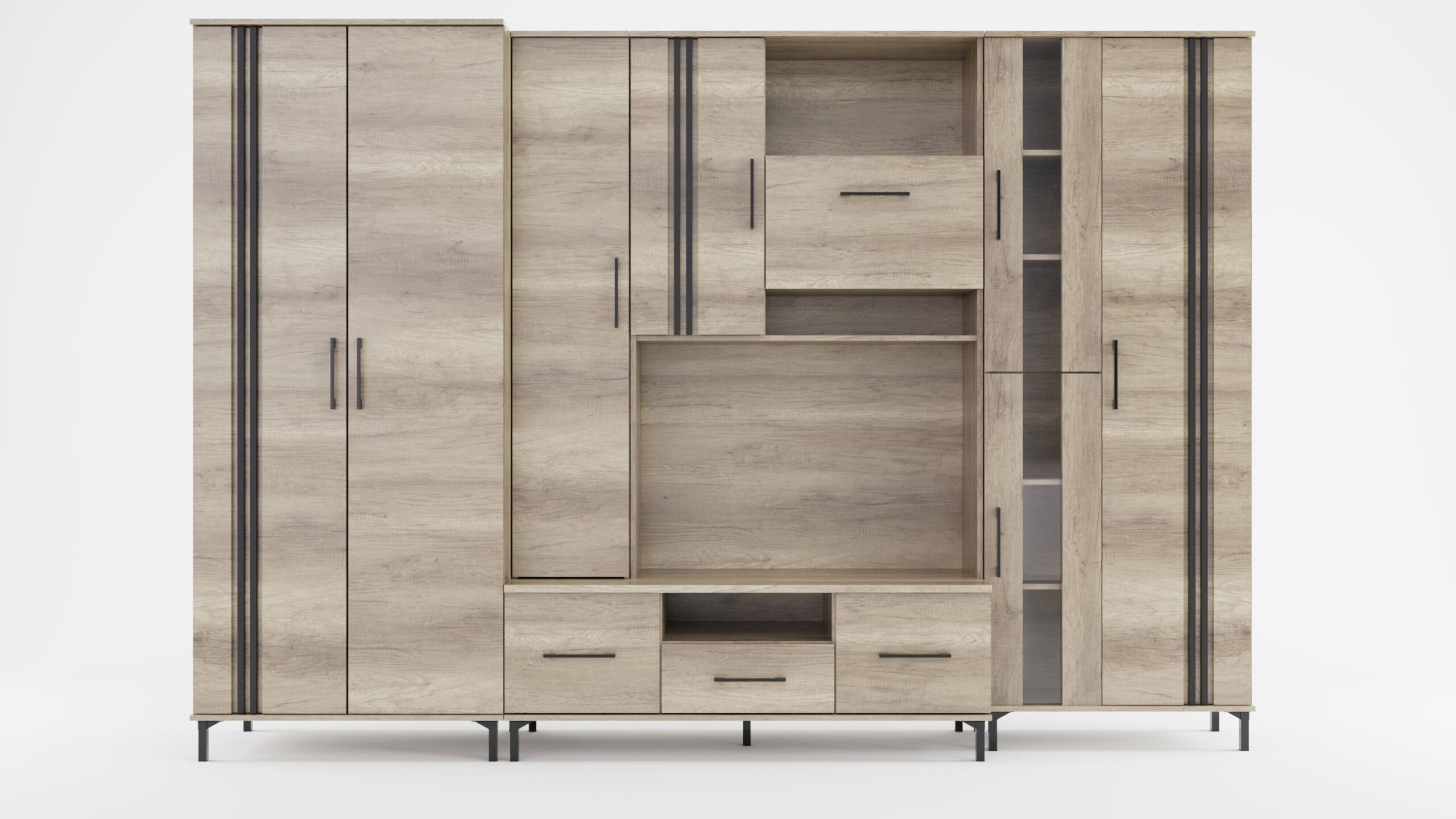 Zestaw KORAL C jest doskonałym wyborem dla tych, którzy we wszystkim szukają klasyki. Prosta konstrukcja i łatwe utrzymanie znajdą swoich fanów. W meblościance znajduje się wiele praktycznie rozmieszczonych schowków, które pomogą Ci zachować porządek, a dzięki otwartym i przeszklonym półkom podkreślisz swoją oryginalność stylowymi dodatkami. Meble są pojemne i dostępne w różnych kolorach.