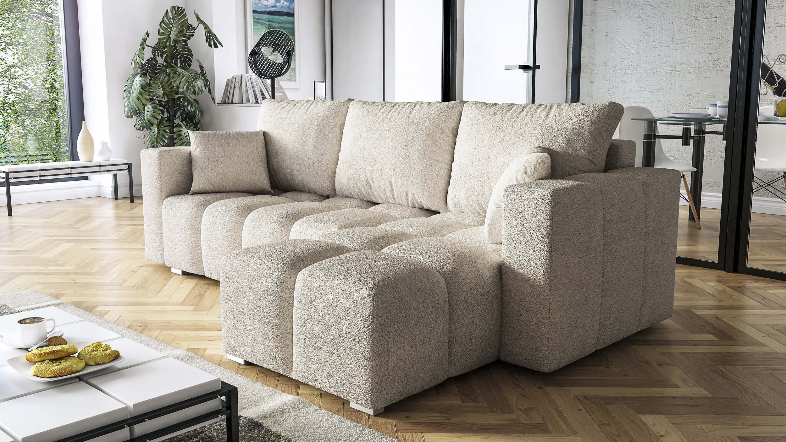 Narożnik z funkcją spania COLL CU-02 doskonale wpasuję się w każde pomieszczenie. Jest to mebel z funkcją spania oraz pojemnikiem na pościel.